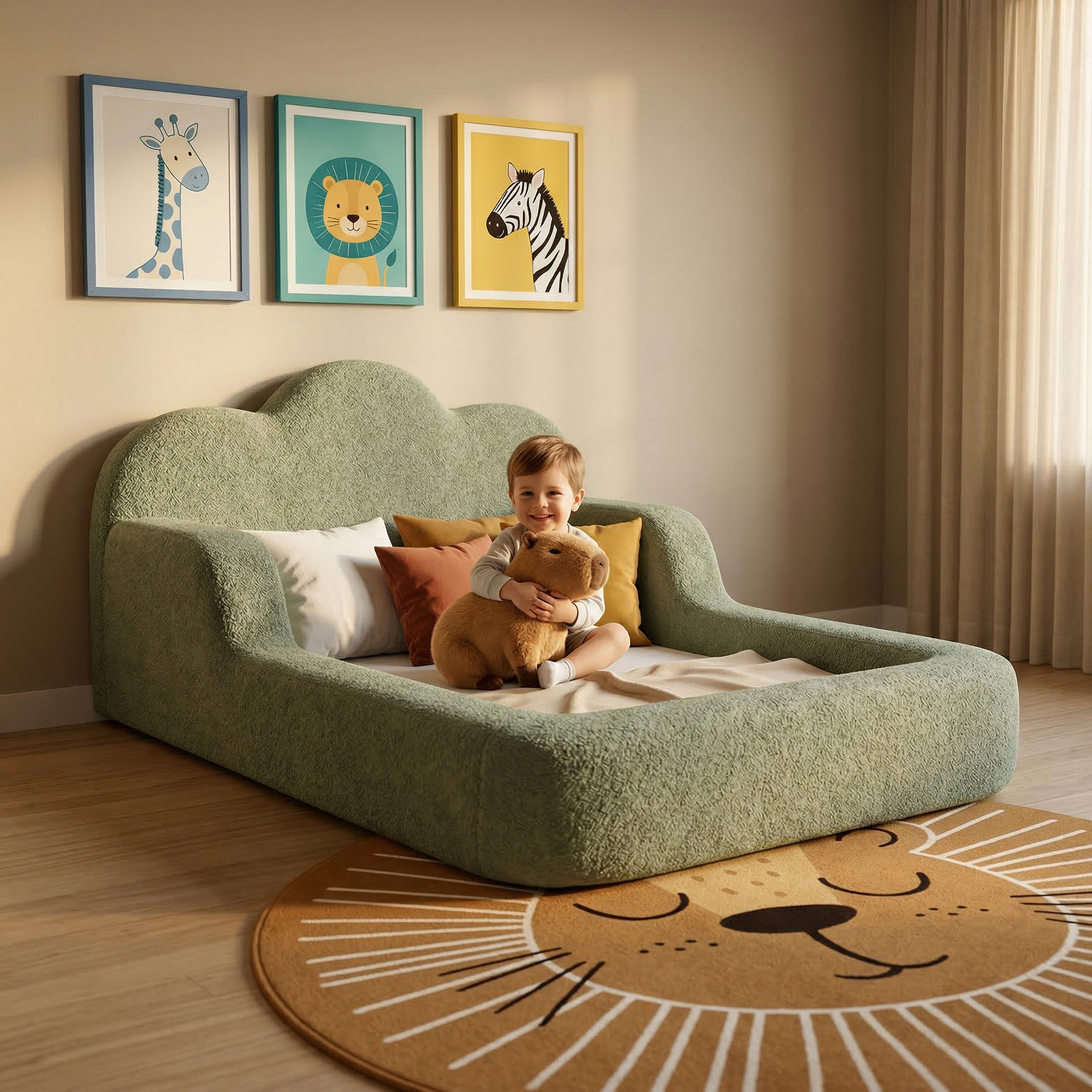 A Cama Montessoriana Sonhos One foi pensada para criar um ambiente acolhedor, onde a criança possa descansar, brincar e imaginar. O encosto em formato de nuvem cria uma sensação de aconchego e proteção, transformando a cama em um verdadeiro cantinho especial no quarto infantil. Seu design lúdico e envolvente convida a criança a relaxar, ler, brincar e viver momentos tranquilos antes de dormir. Uma cama que se torna parte do universo de descobertas da infância.